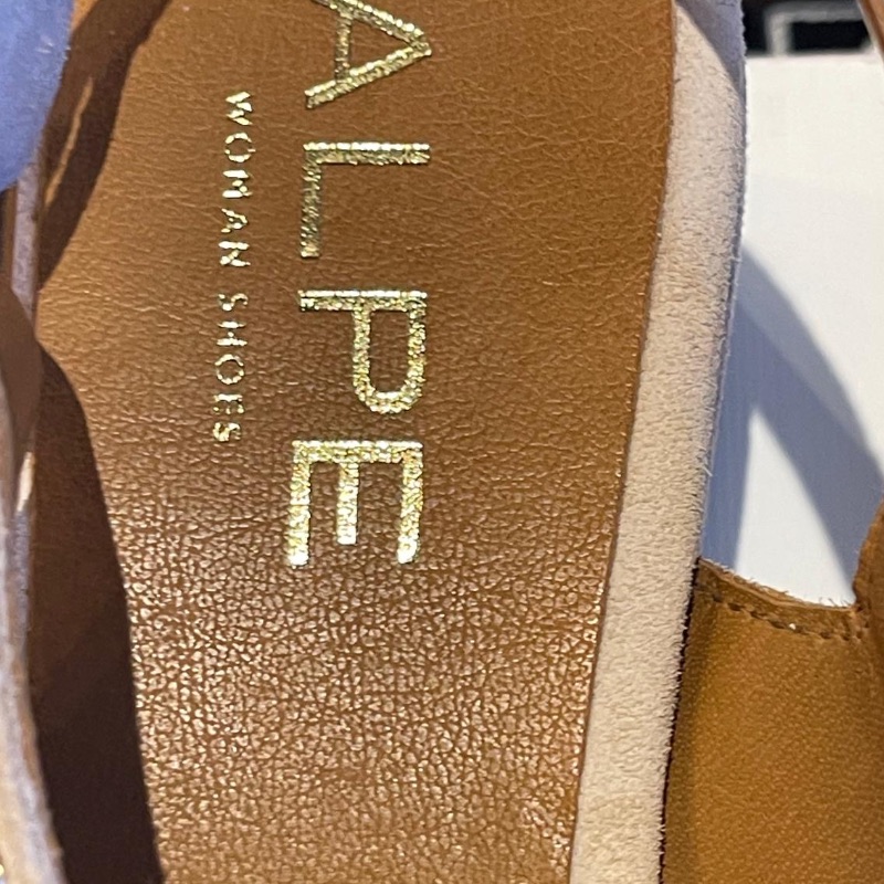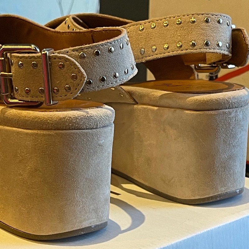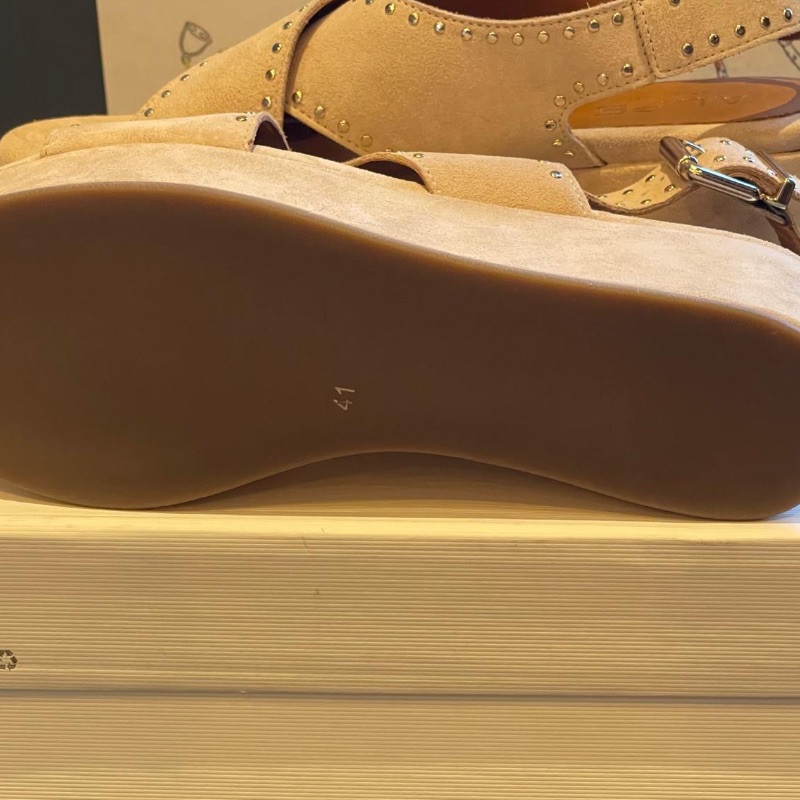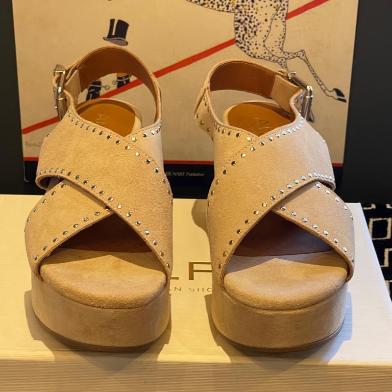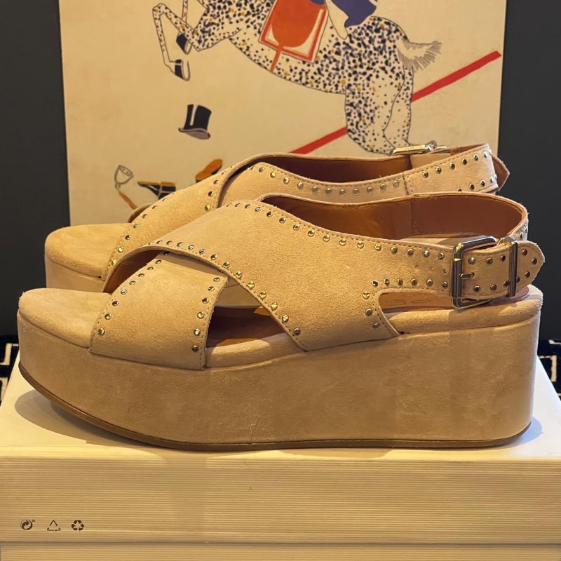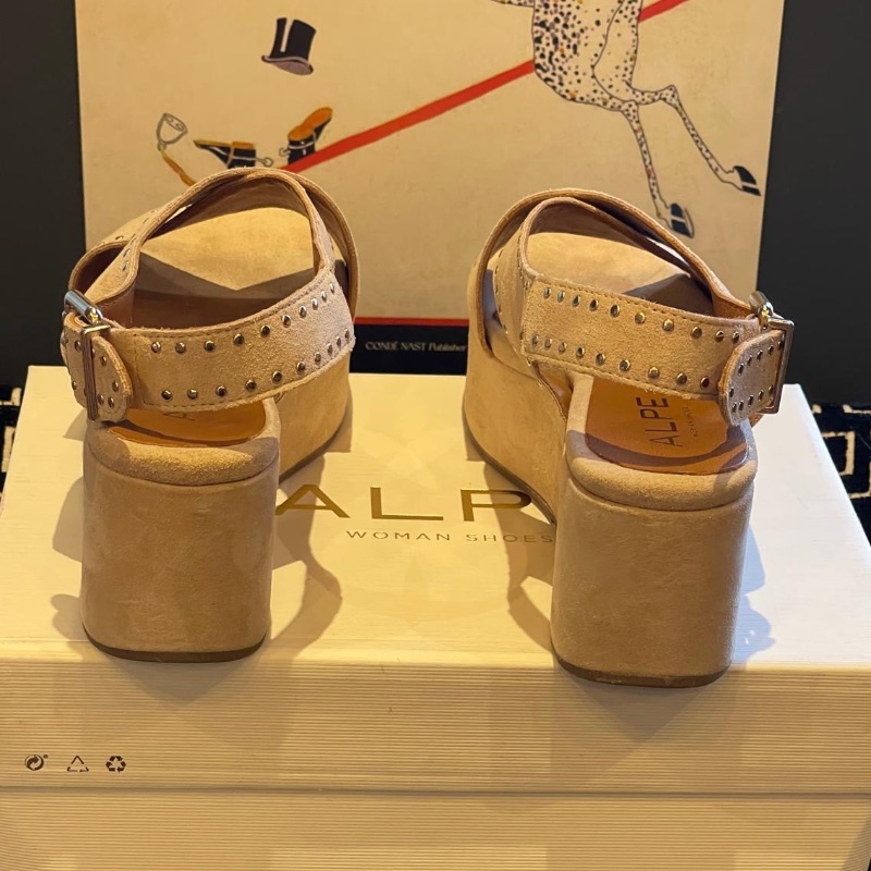 Wedge suede sandals from Alpe . Adjustable heel straps and stud details