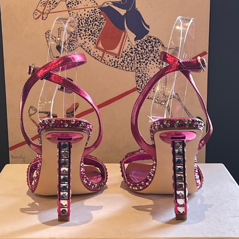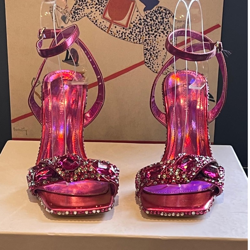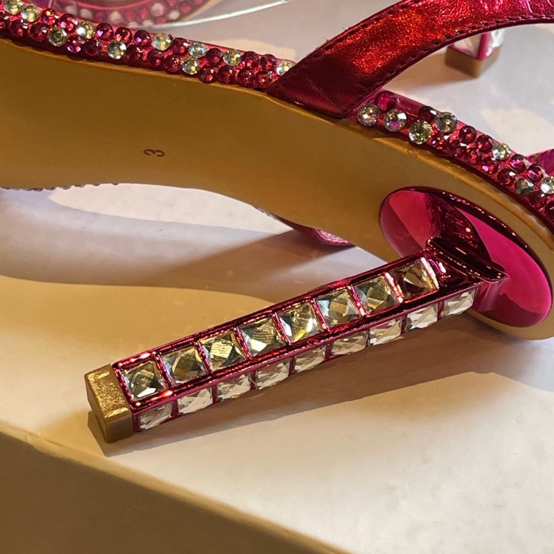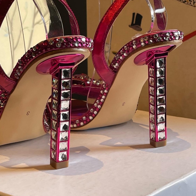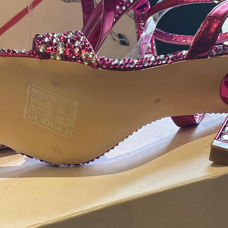 Azalea Wang Pink Diamante sandals with Diamante heels.