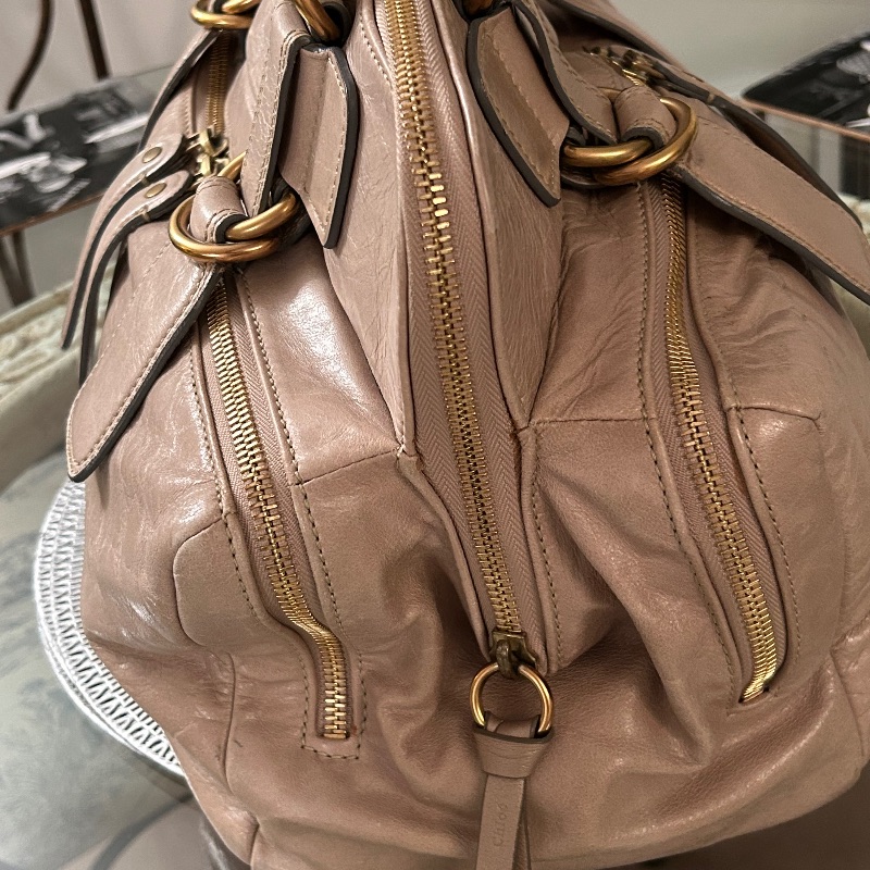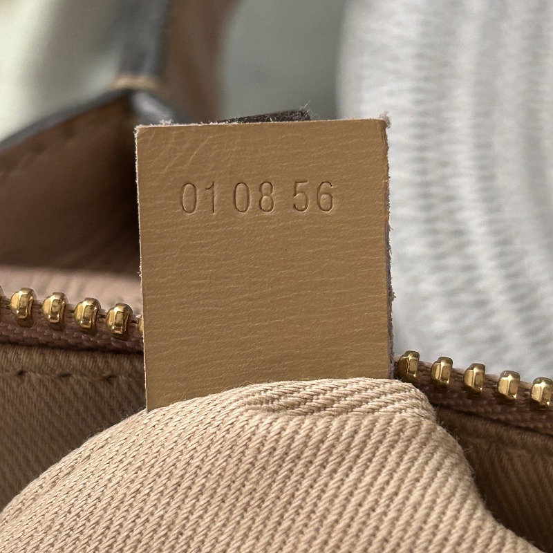 In very good pre-loved condition. There are two small pen marks inside the bag, otherwise there is no visible damage at all.