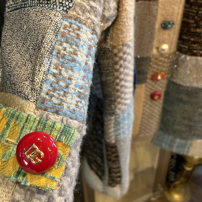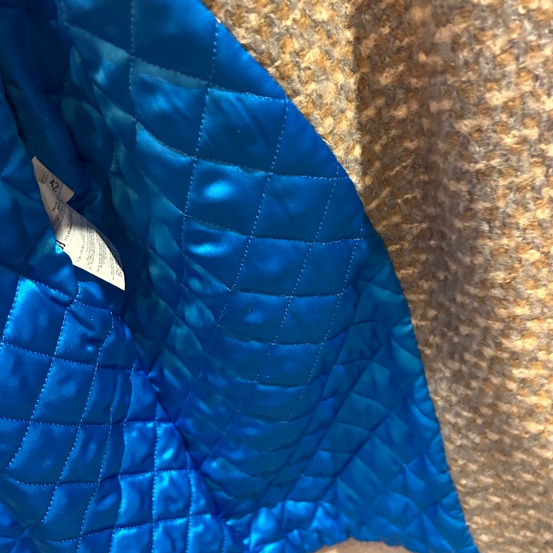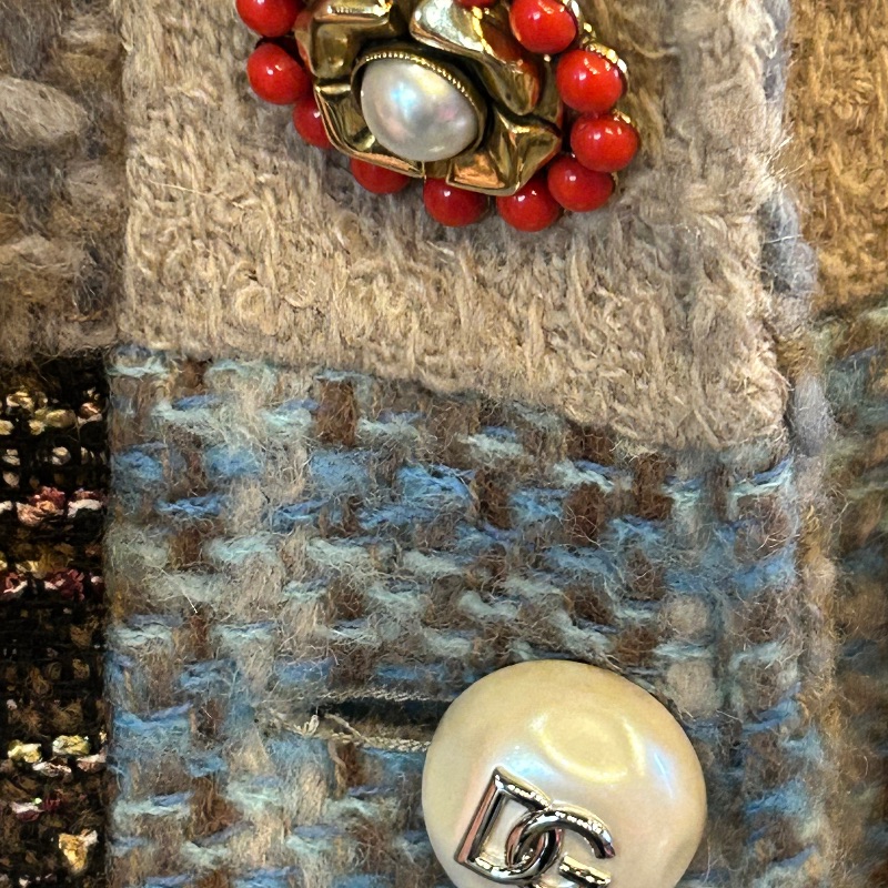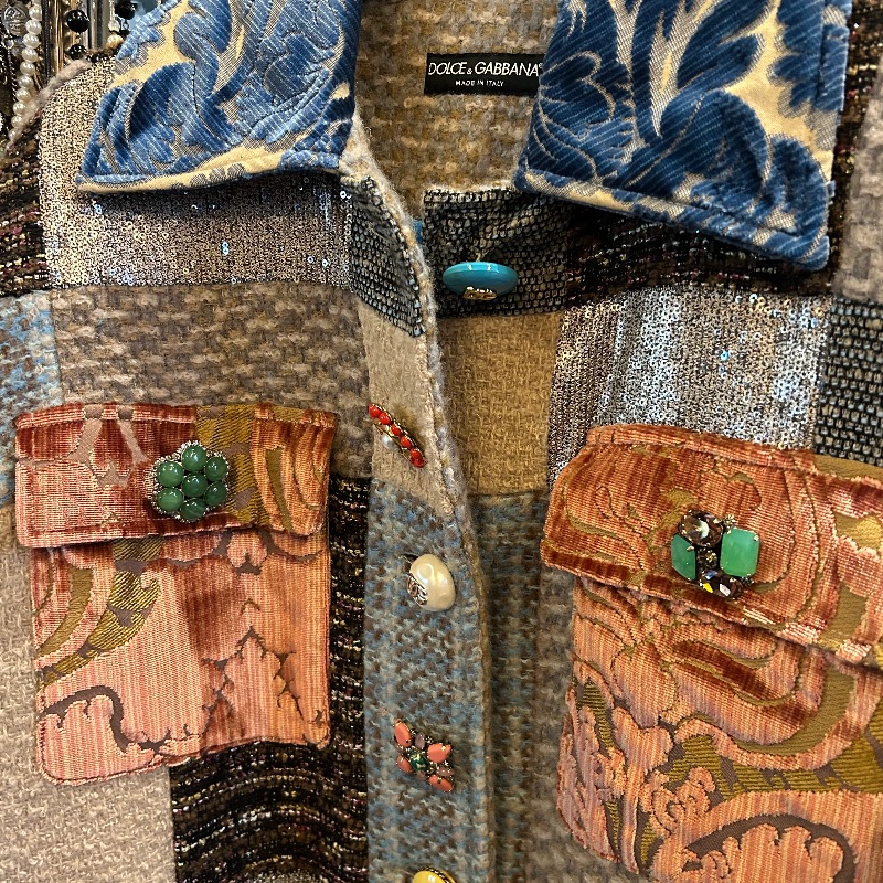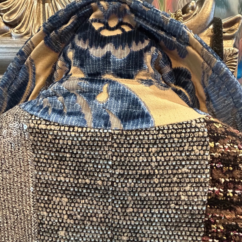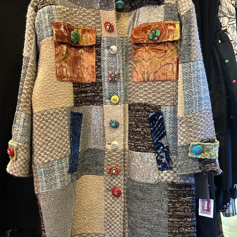 Made from merino and other wools, amazingly oversized with statement buttons, sequin panels and brocade velvet details. Electric blue silk lining - please study all photos