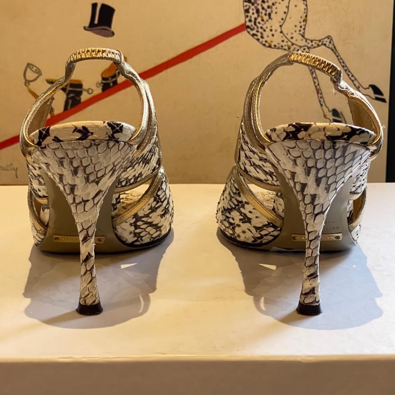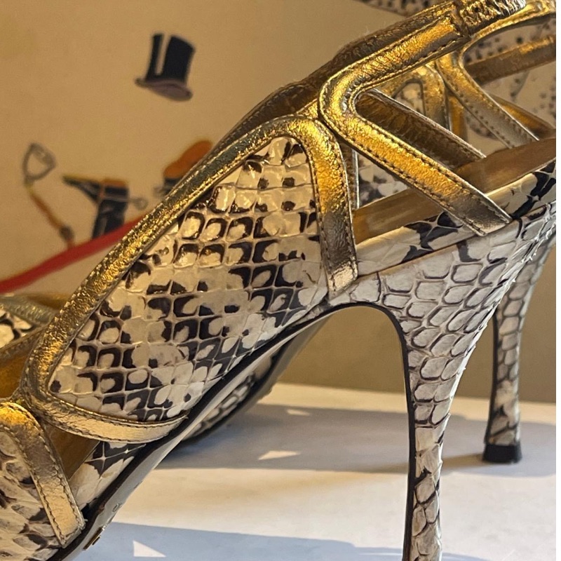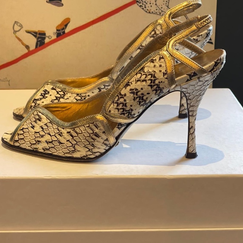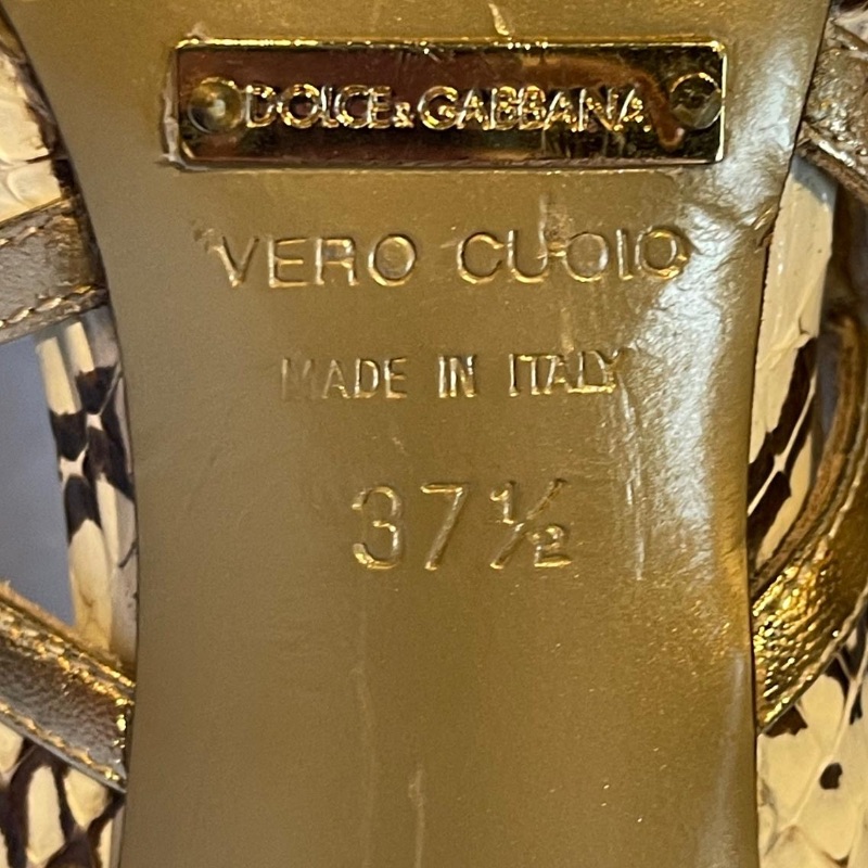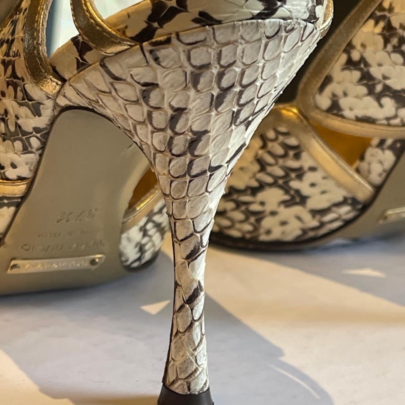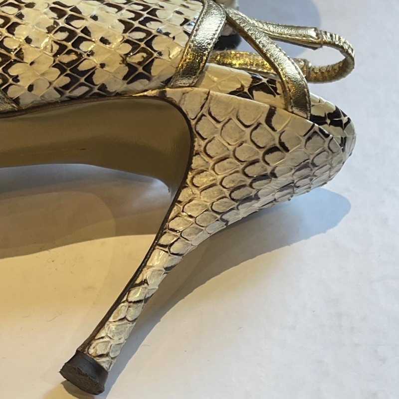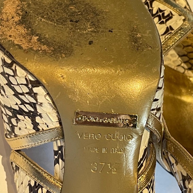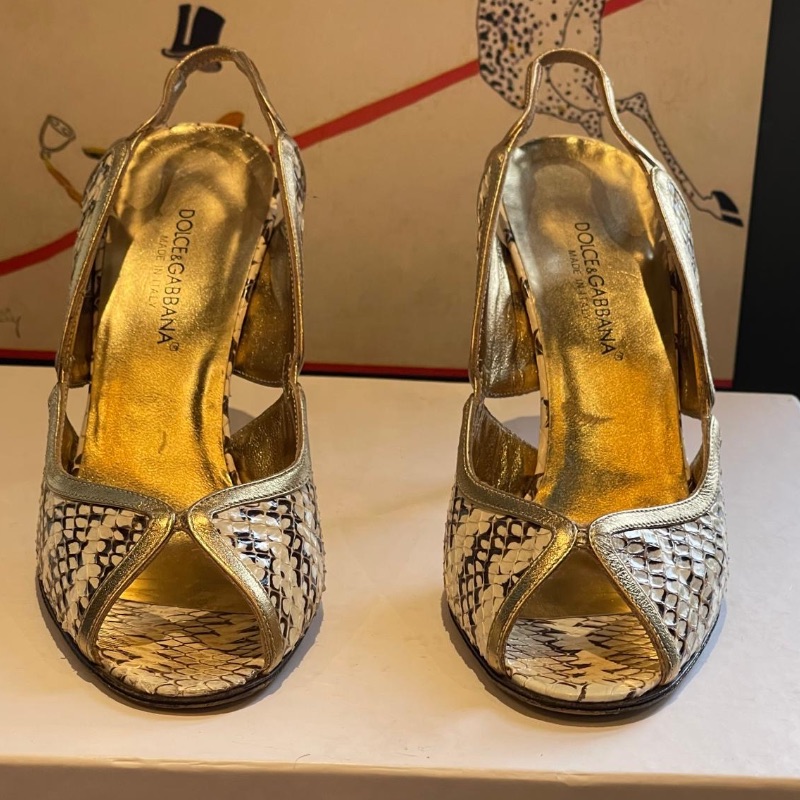 Gorgeous snake slingback heels by D&G. Gold leather edging with elasticated heel straps.