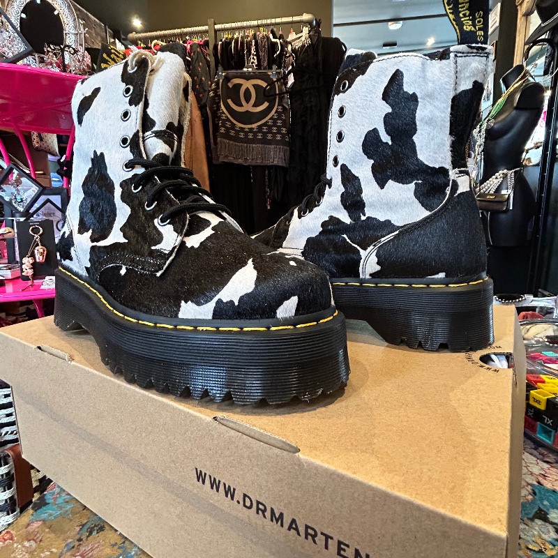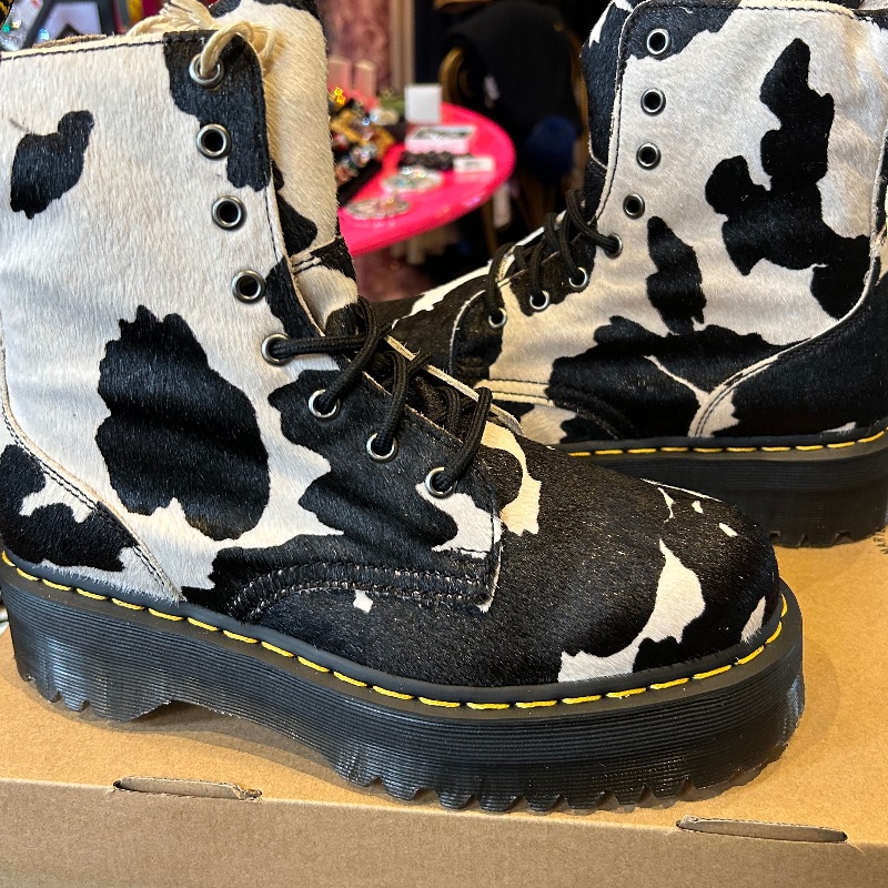Jaron platform Dr Martens with hair on cow print