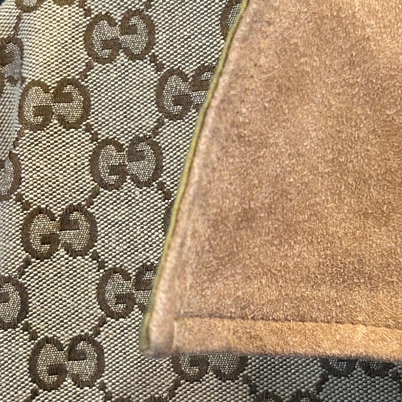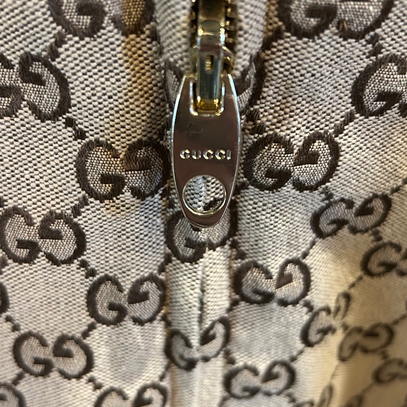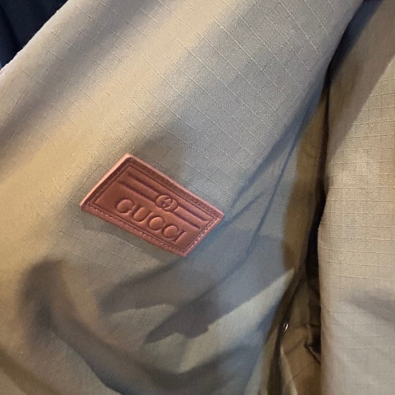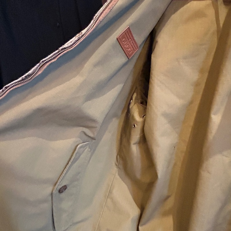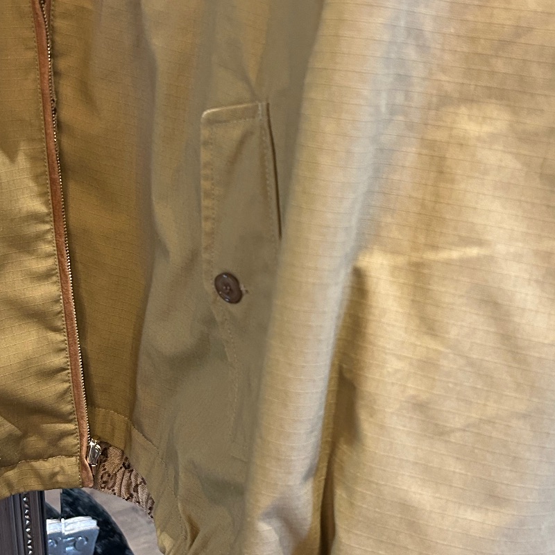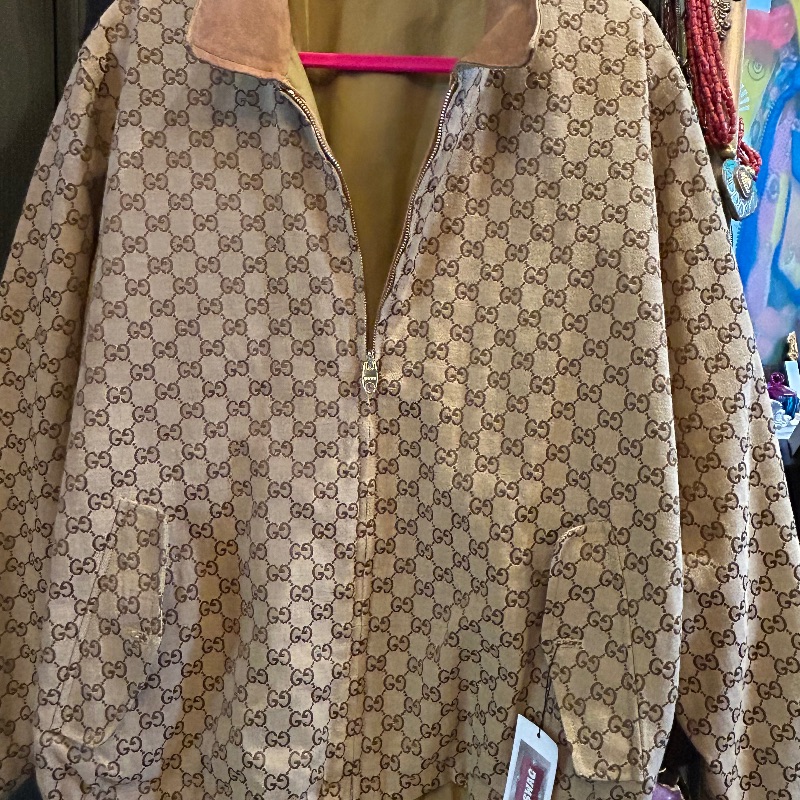 Unisex Gucci monogram jacket in Brown / Gold / Green colours. Totally reversible to a green canvas jacket.