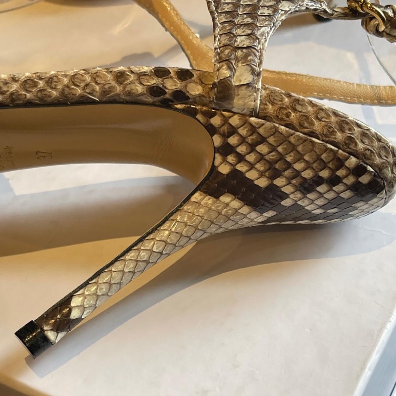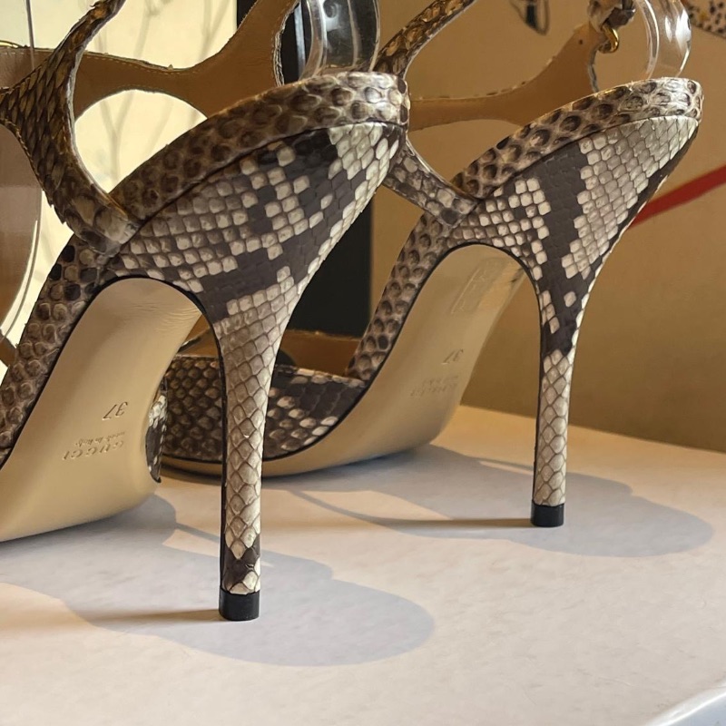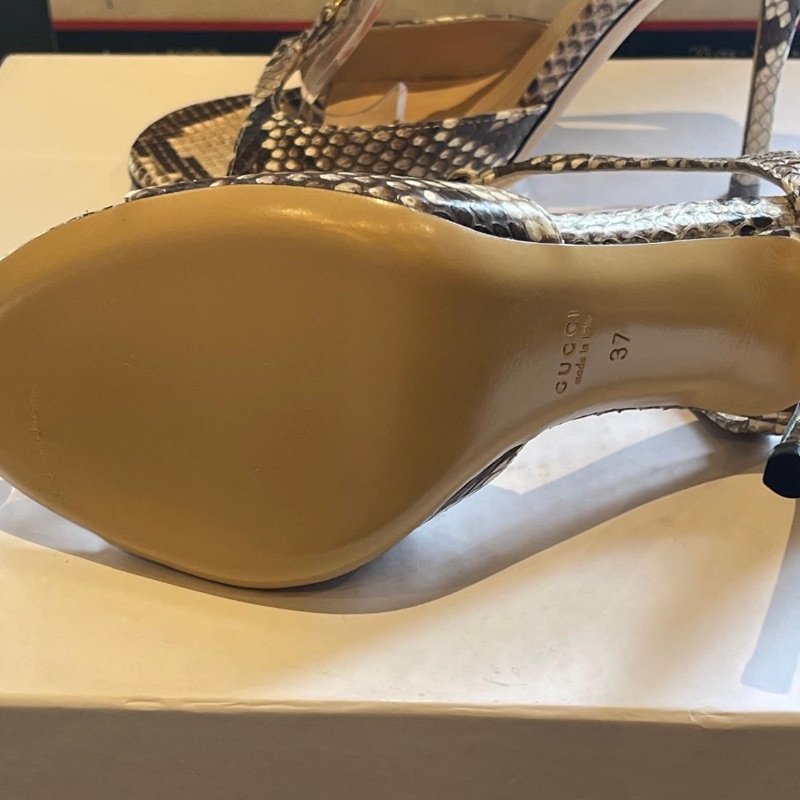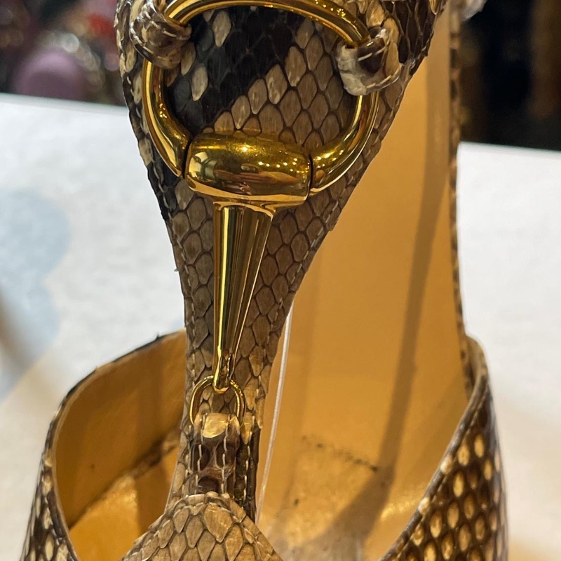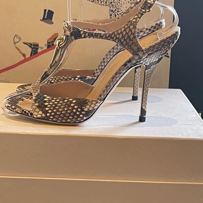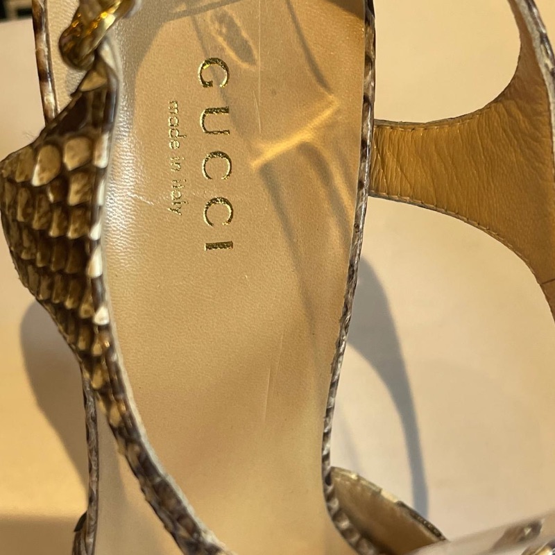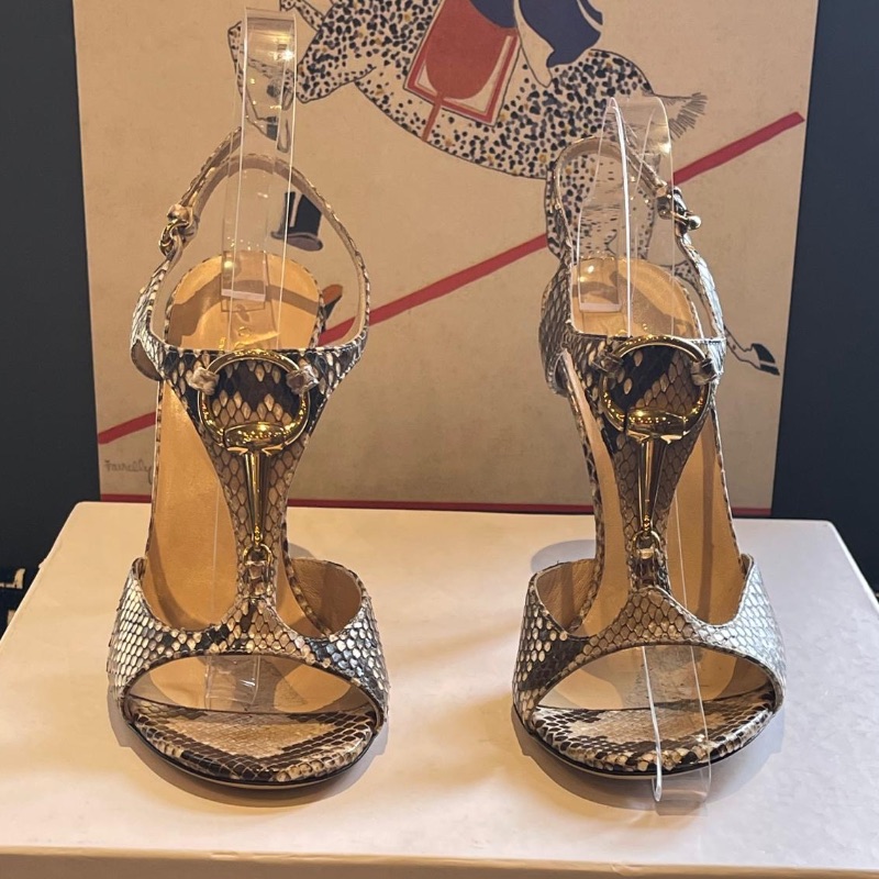 Gucci Horsebit leather heeled sandals. Metal Horsebit to front and ankle strap