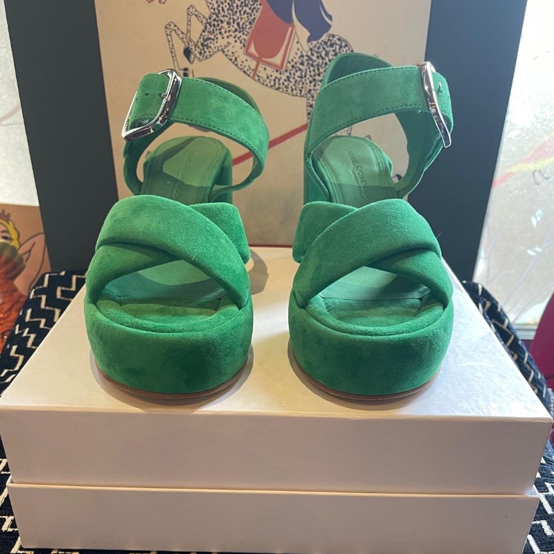 Divine designer velvety ALL LEATHER block heeled sandals by Kennel & Schmenger
