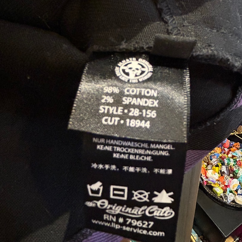 A rare little top measures 28-32” chest and has spandex stretch. Main body of fabric is denim