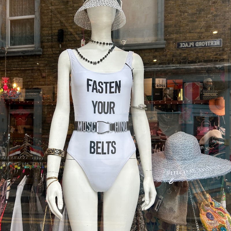 Stunning Moschino Couture graphic bodysuit in size small. Would fit 8-10. White with black logo ‘Fasten Your Moschino Belts’ RRP £245