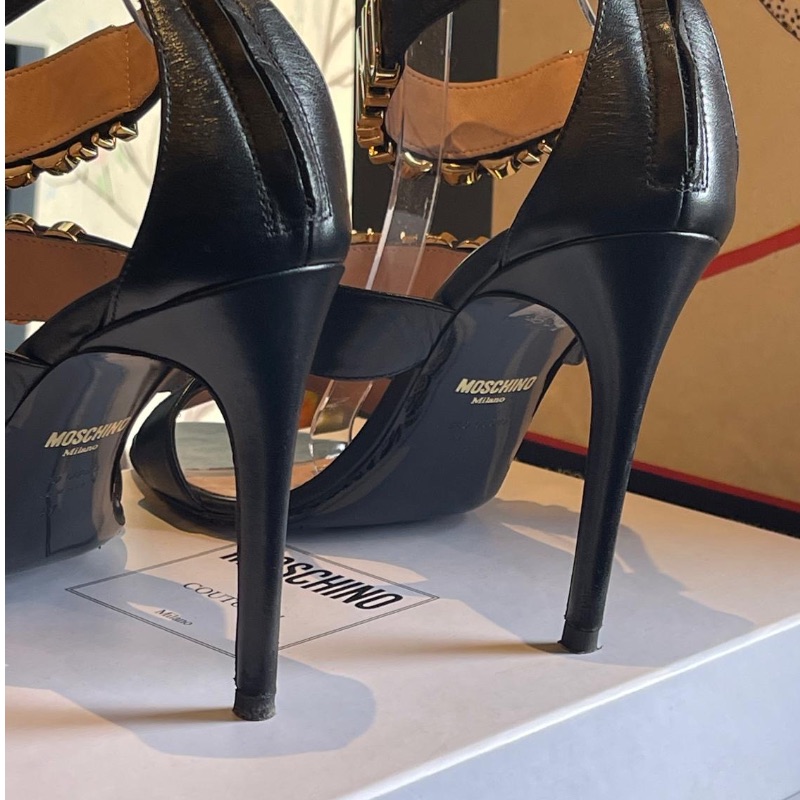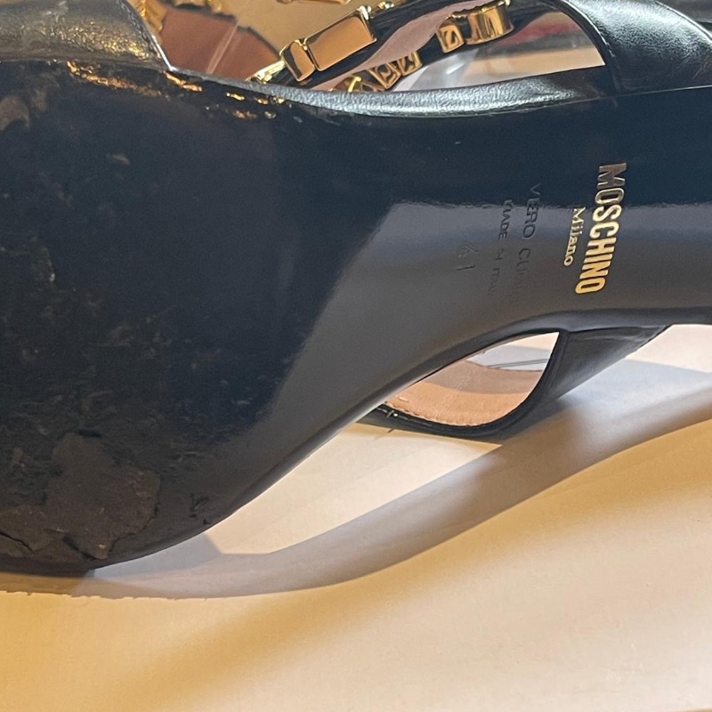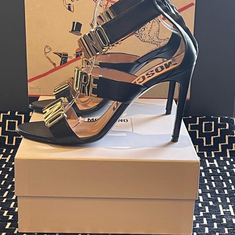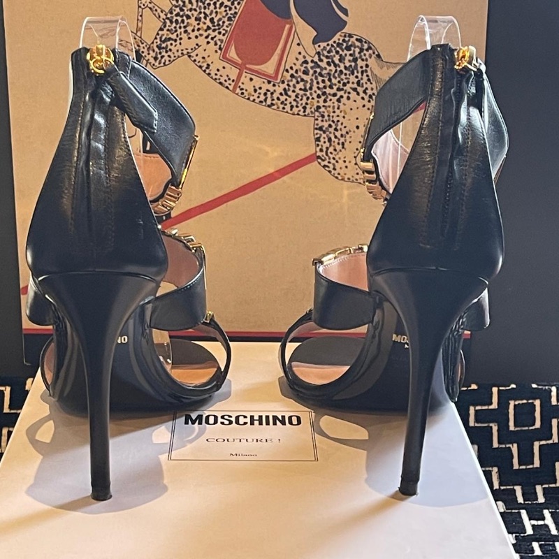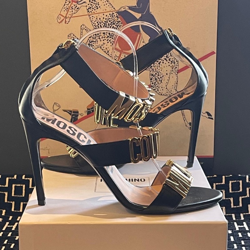 Divine Moschino Couture Milano Gold Letters Leather Sandals. What more can I say….gorgeous