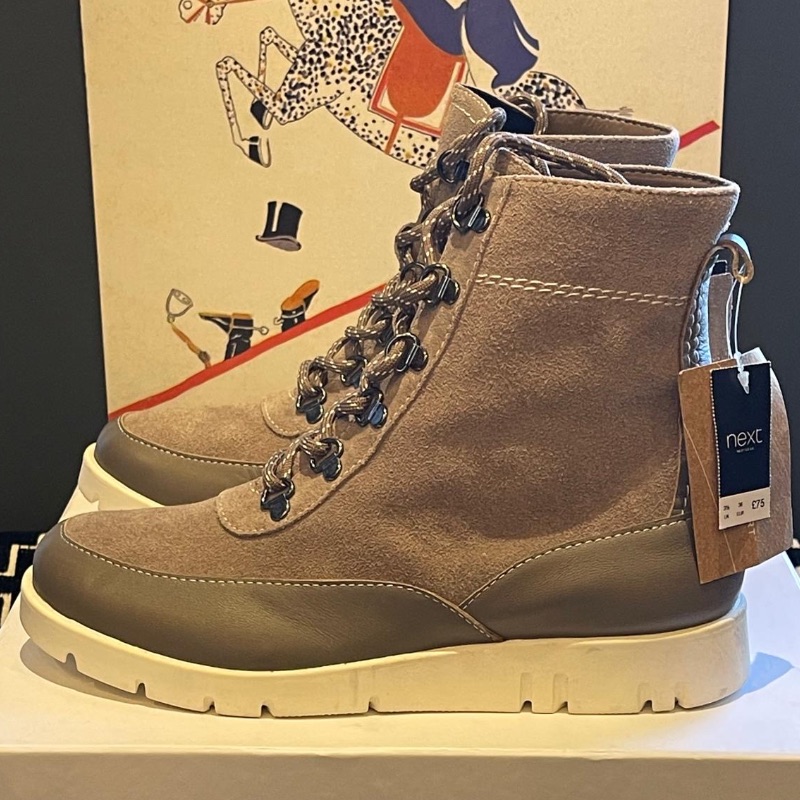 Next ankle boots in an olive / grey colour, leather and suede