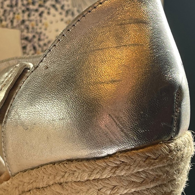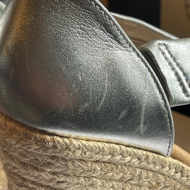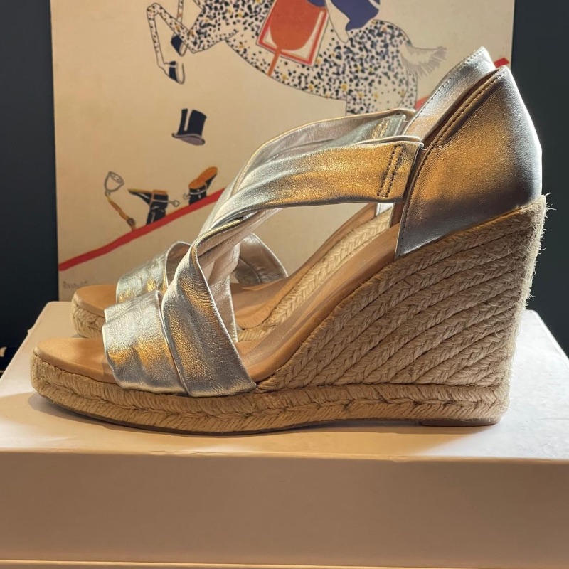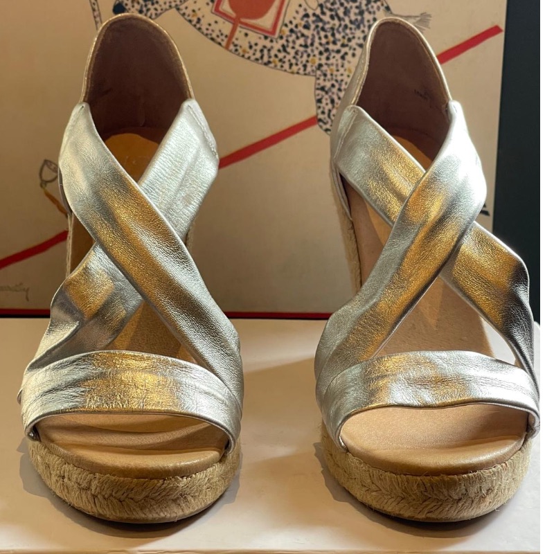 Ultra comfy soft leather wedges by Office. Metallic silver
