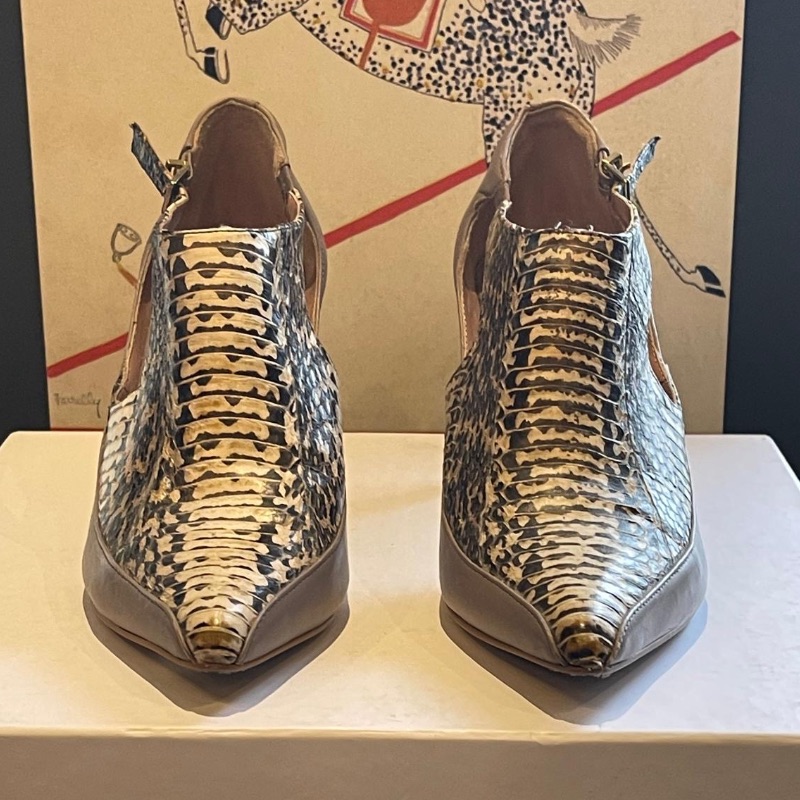 Leather pointed toe with snake print design by Reiss