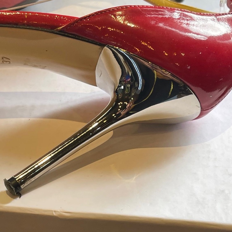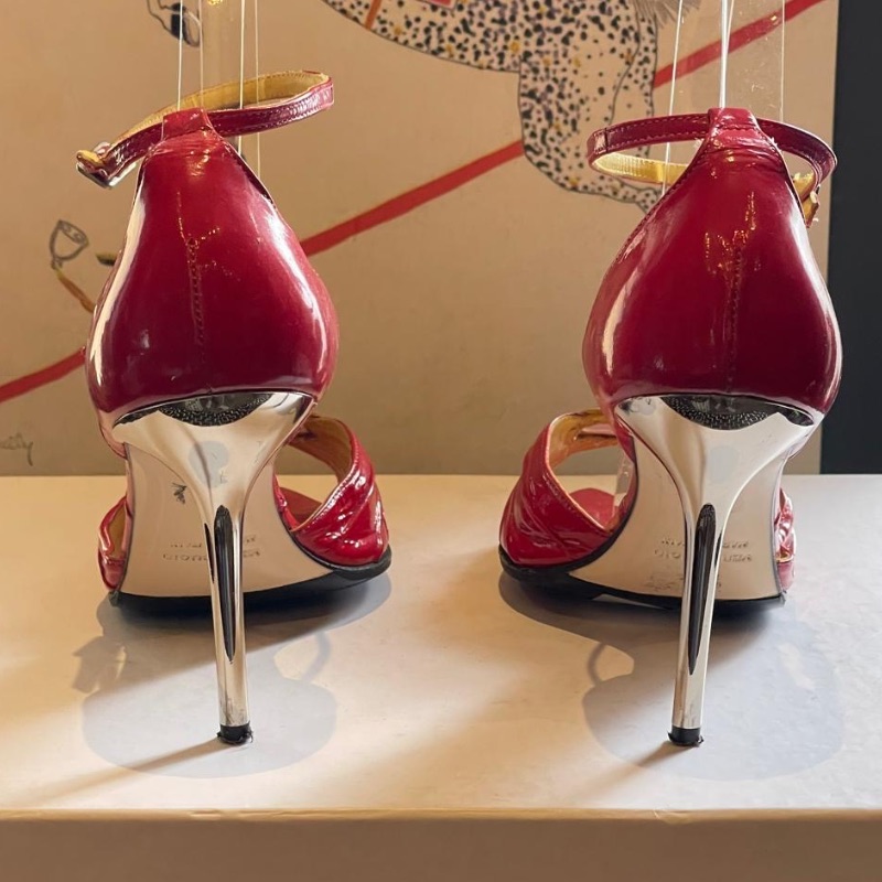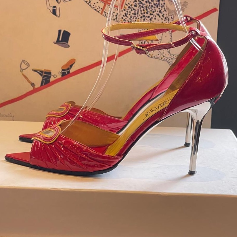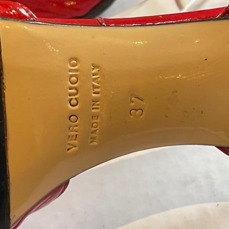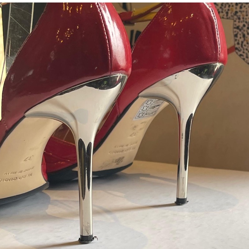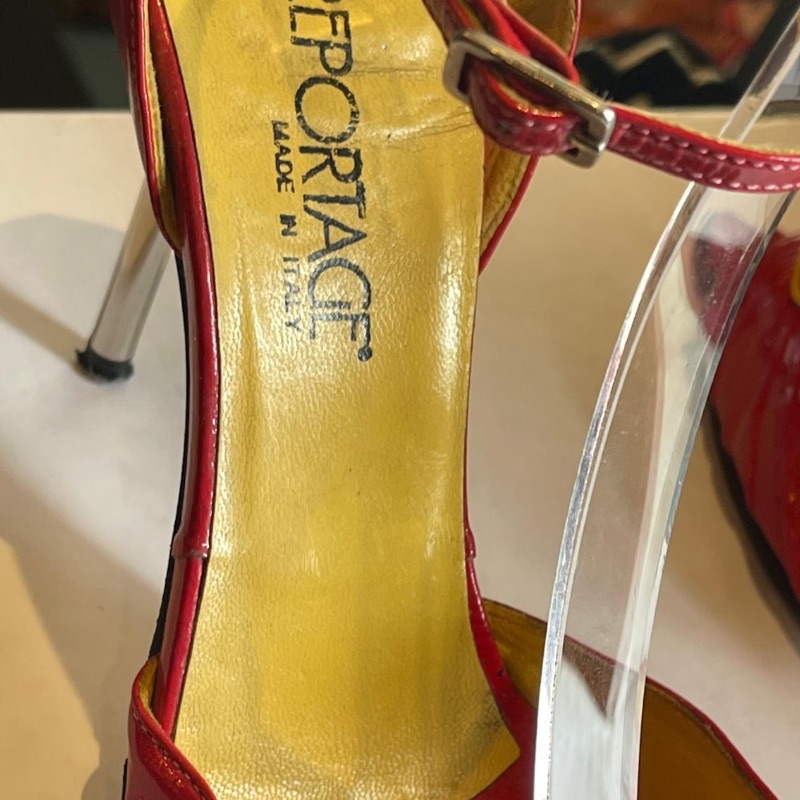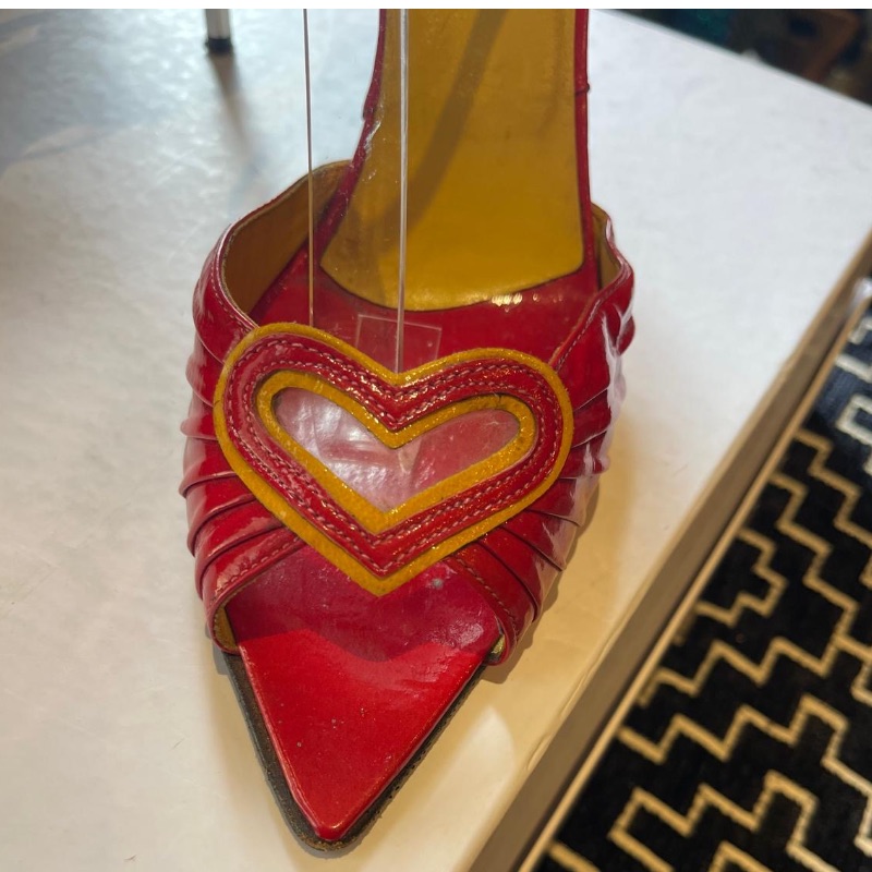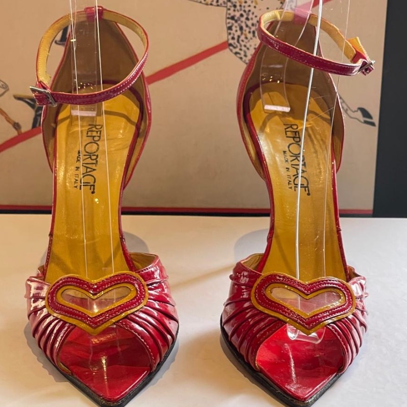 Leather red heart heels by Reportage Italy. All Italian leather with pointed Peeptoe and metal heels.