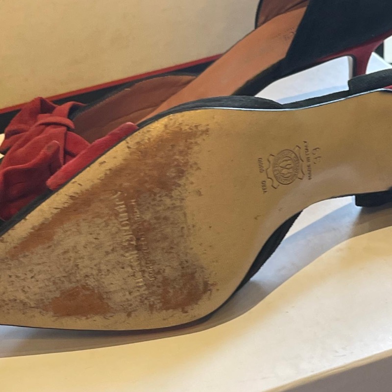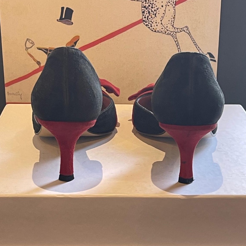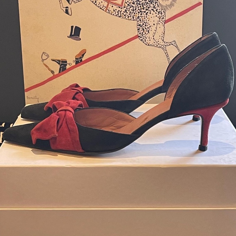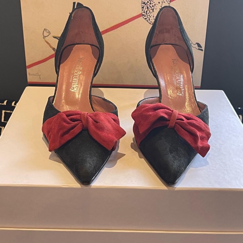 Russell & Bromley Kitten Heels in black & red suede All leather