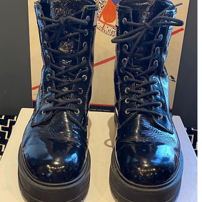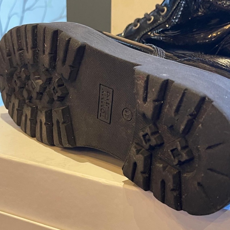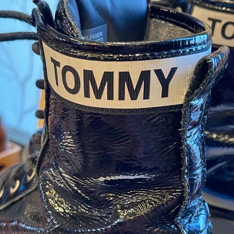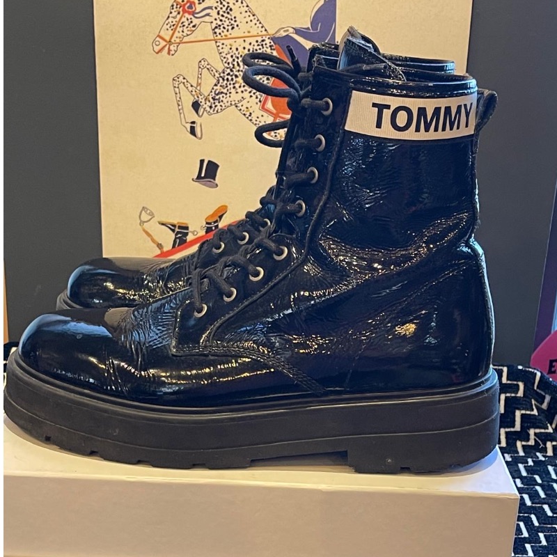 Tommy Hilfiger patent black logo air wait boots