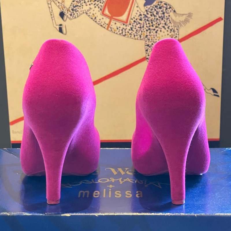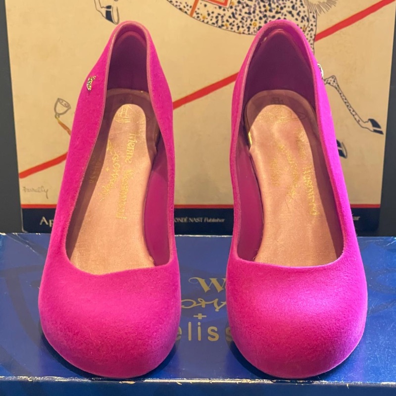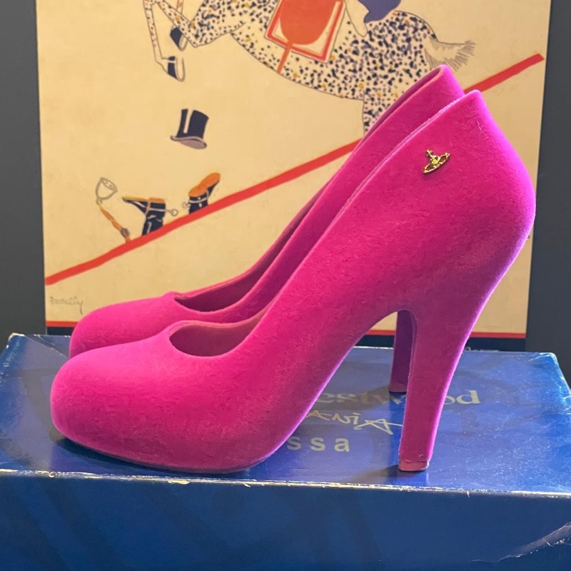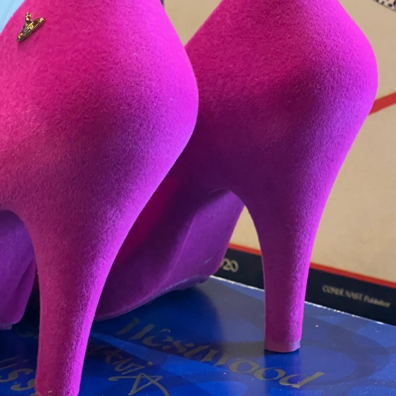 Vivienne Westwood Anglomania X Fuschia pink velvet heels.
