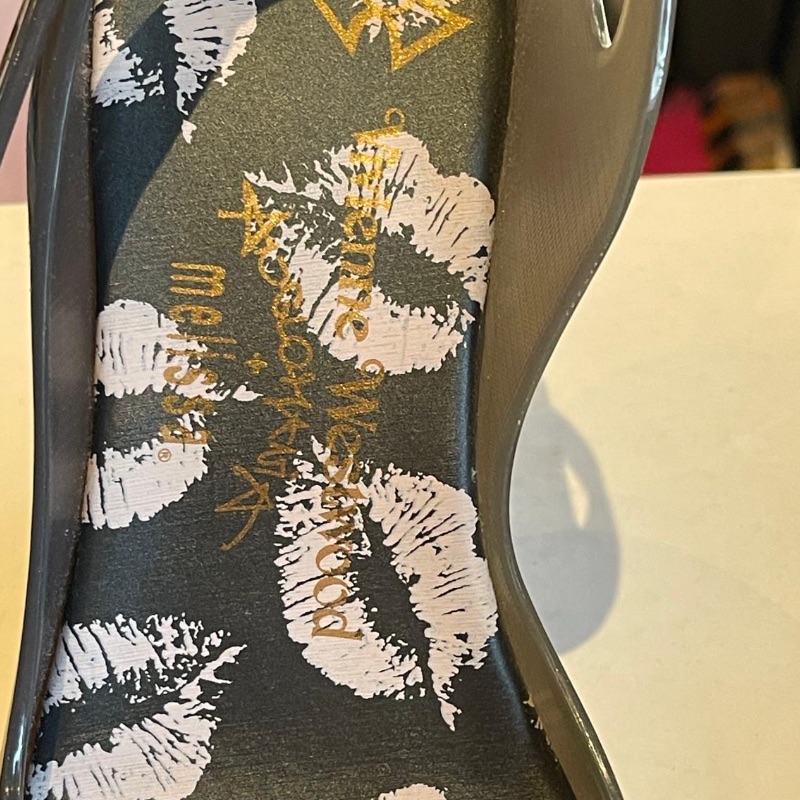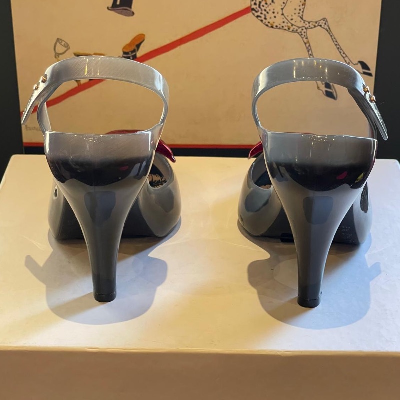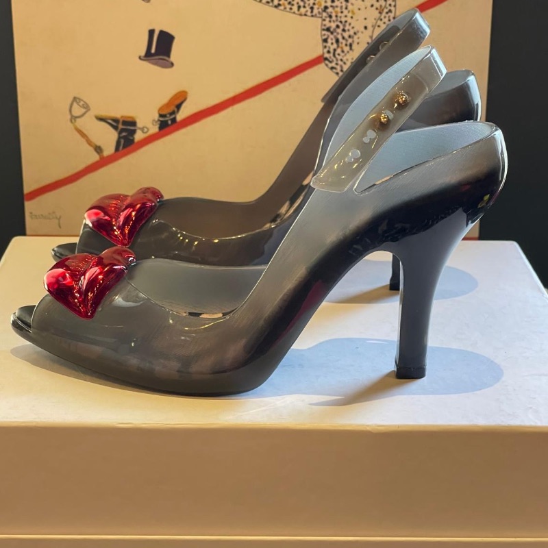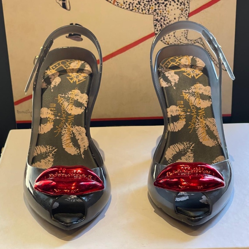 Legendary Vivienne Westwood Grey Melissa Slingback Rubberised shoes with red lips